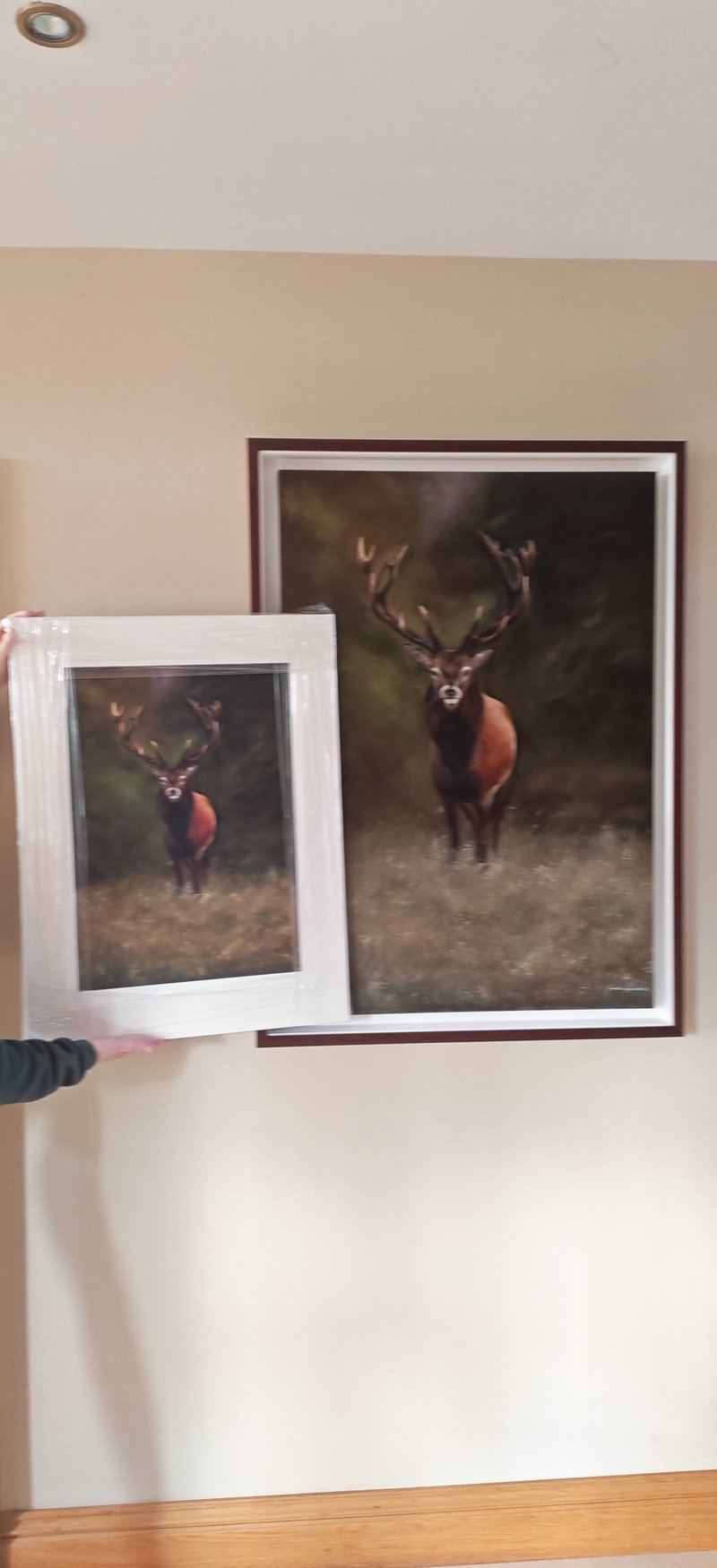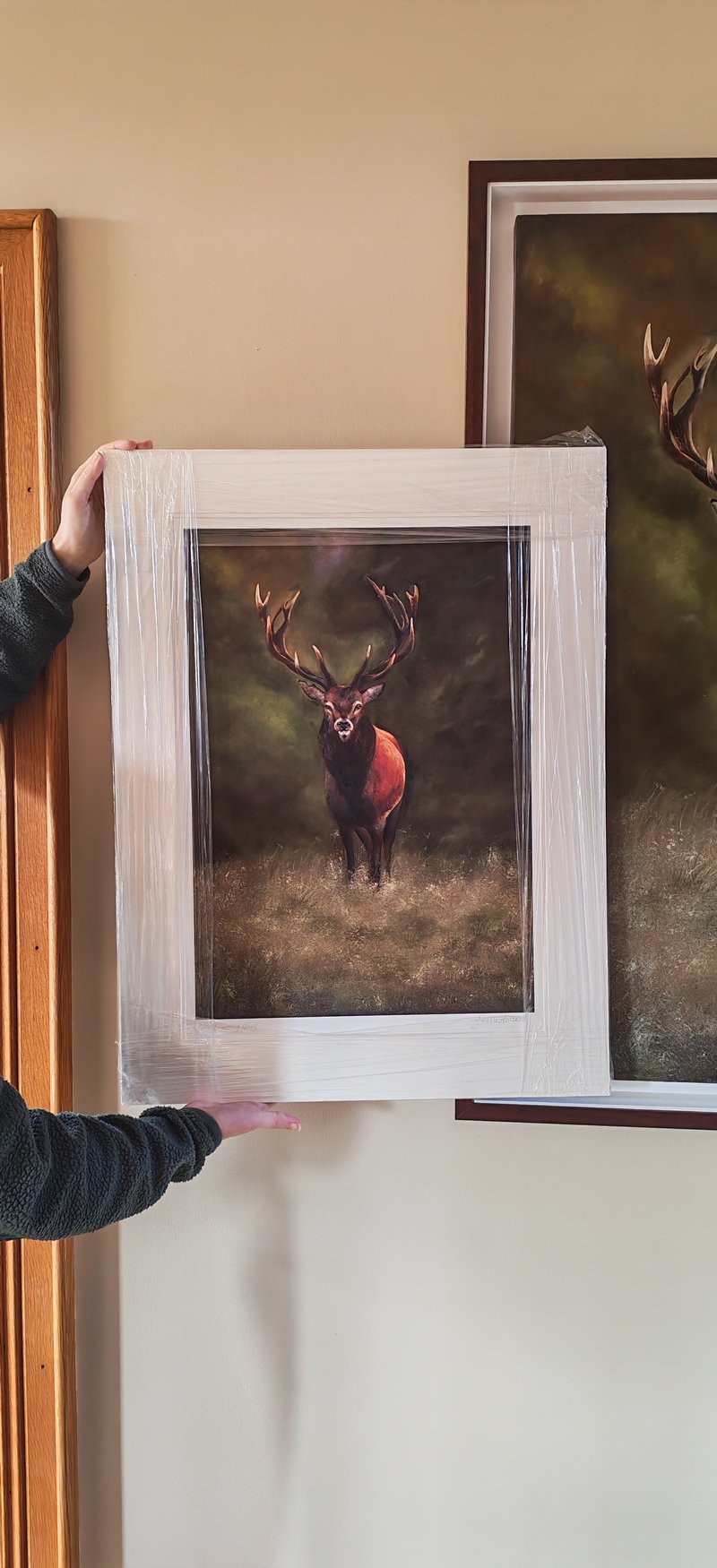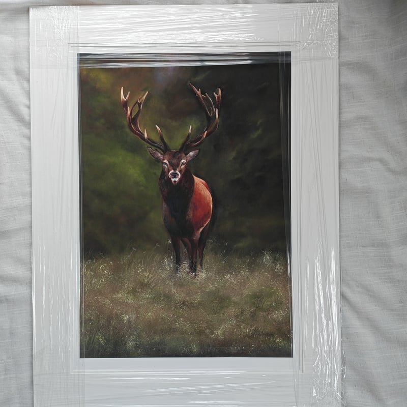 Limited edition fine art print produced from the original oil painting of this impressive stag. Printed with archival inks on high quality paper and displayed in a beautiful double mount. This would make a magnificent statement piece in any home.
